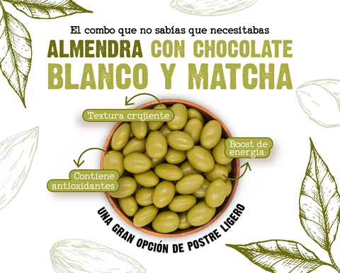Almendra Cubierta de Chocolate Blanco y Matcha - Estado Natural